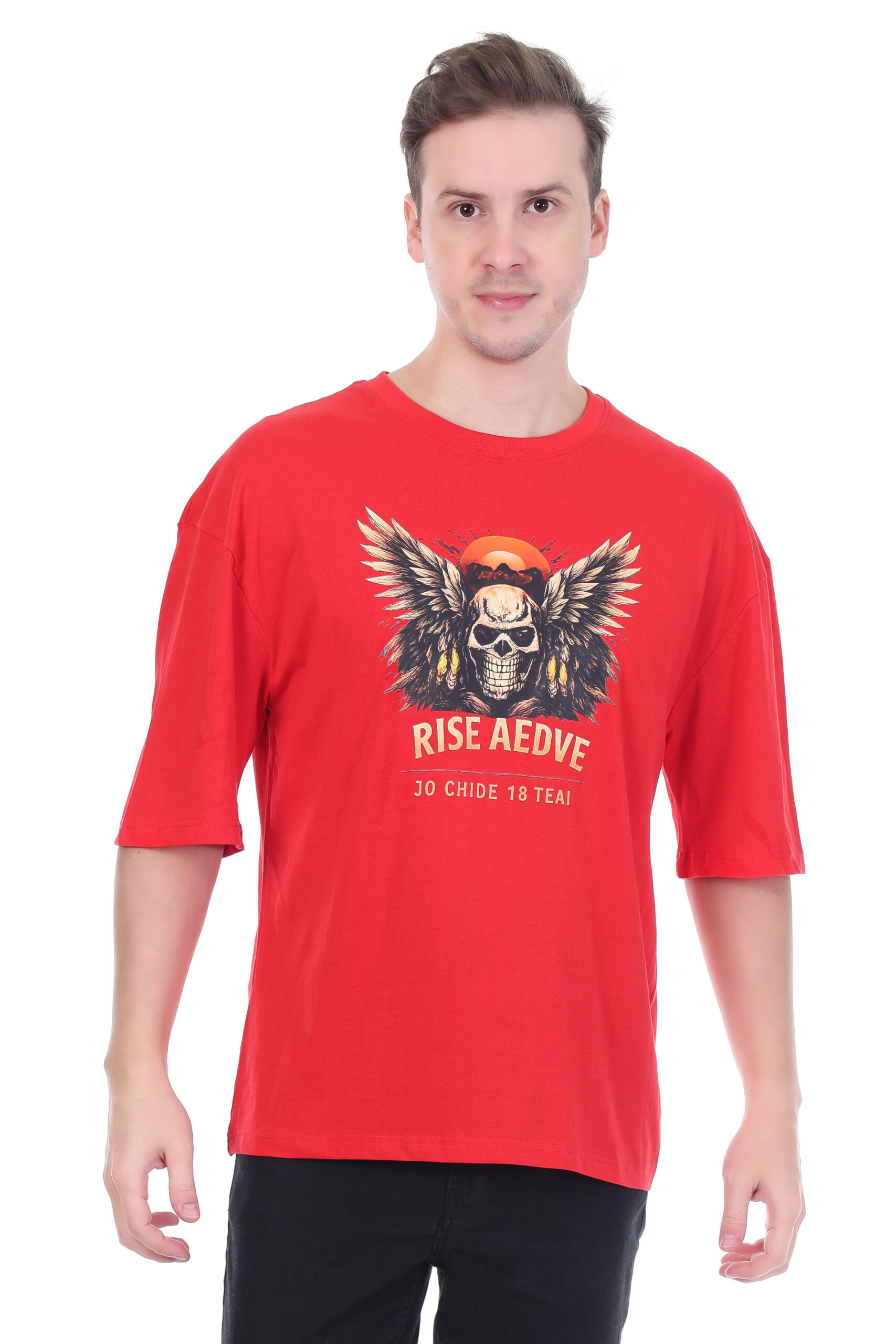The oversized fit provides a relaxed and trendy silhouette, while the classic round neck and 3/4 sleeves add a stylish touch to casual dressing. The graphic print enhances its contemporary appeal, making it suitable for outings, travel, and daily use.