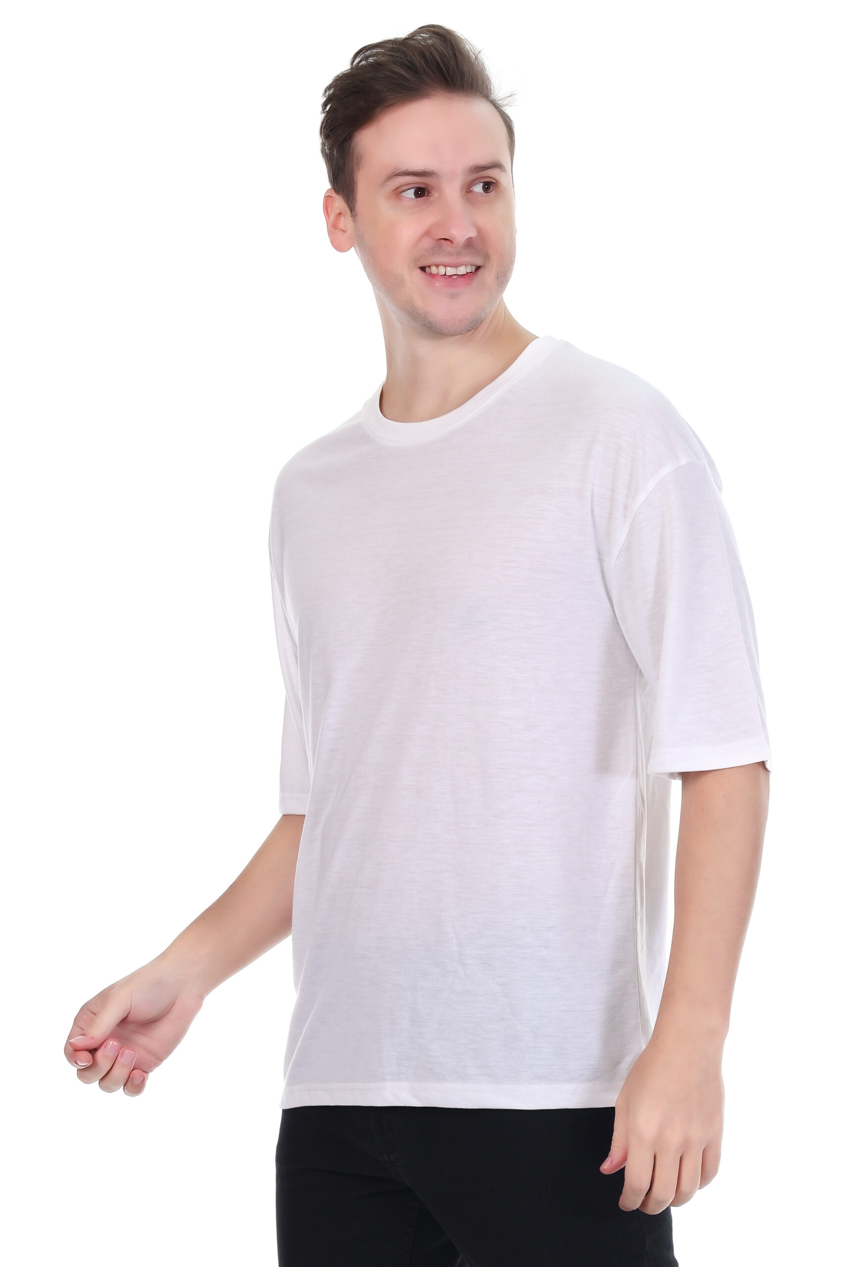 The oversized fit delivers a relaxed and trendy look, while the classic round neck and 3/4 sleeves add a contemporary edge. Perfect for casual outings, lounging, travel, or daily wear, this solid T-shirt pairs easily with jeans, joggers, or shorts for a versatile wardrobe essential.