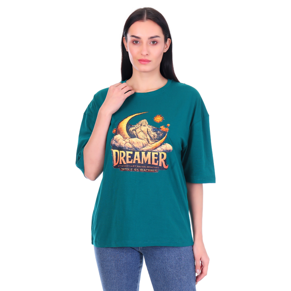 FIcon Women Oversized Graphic Printed Cotton T-Shirt