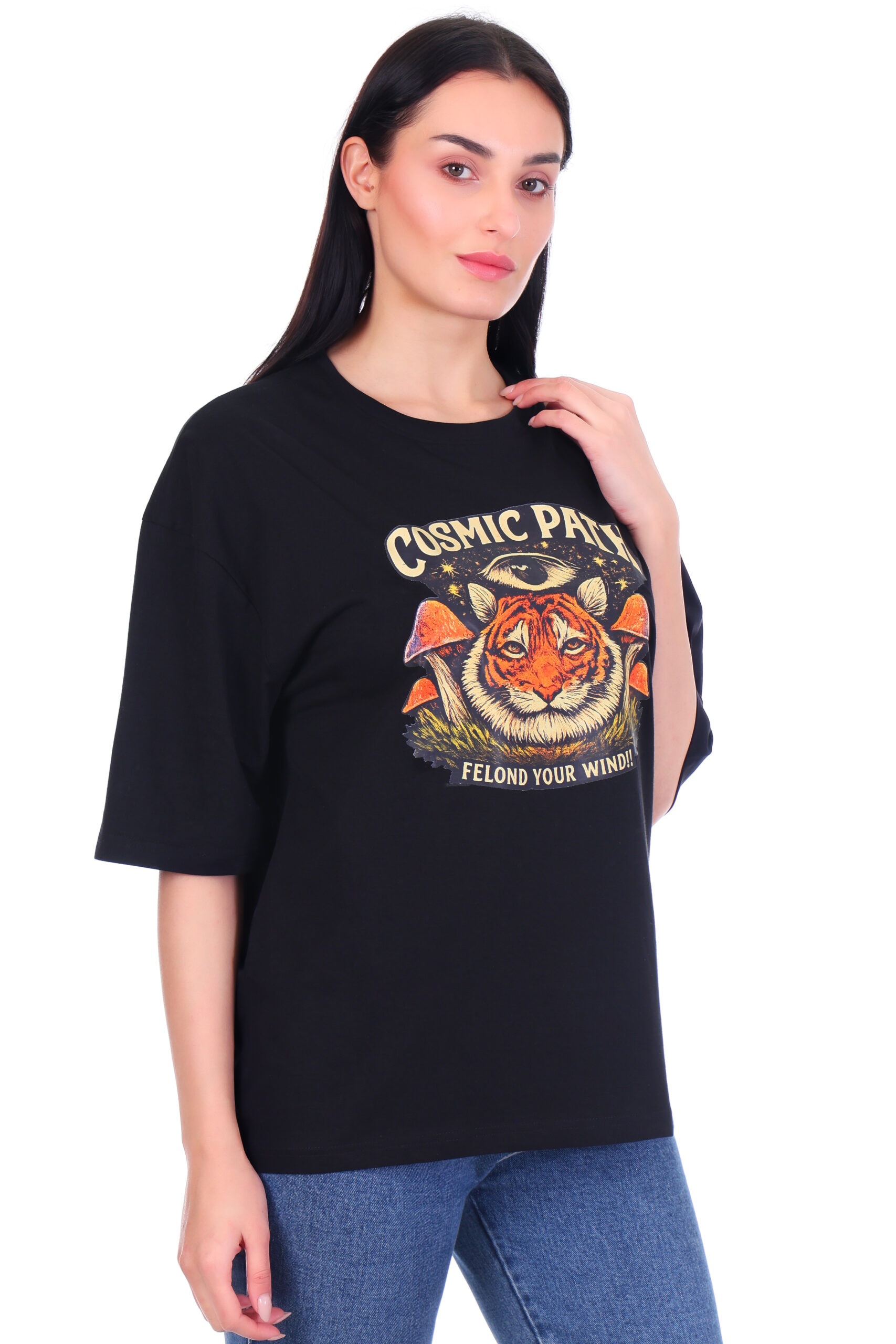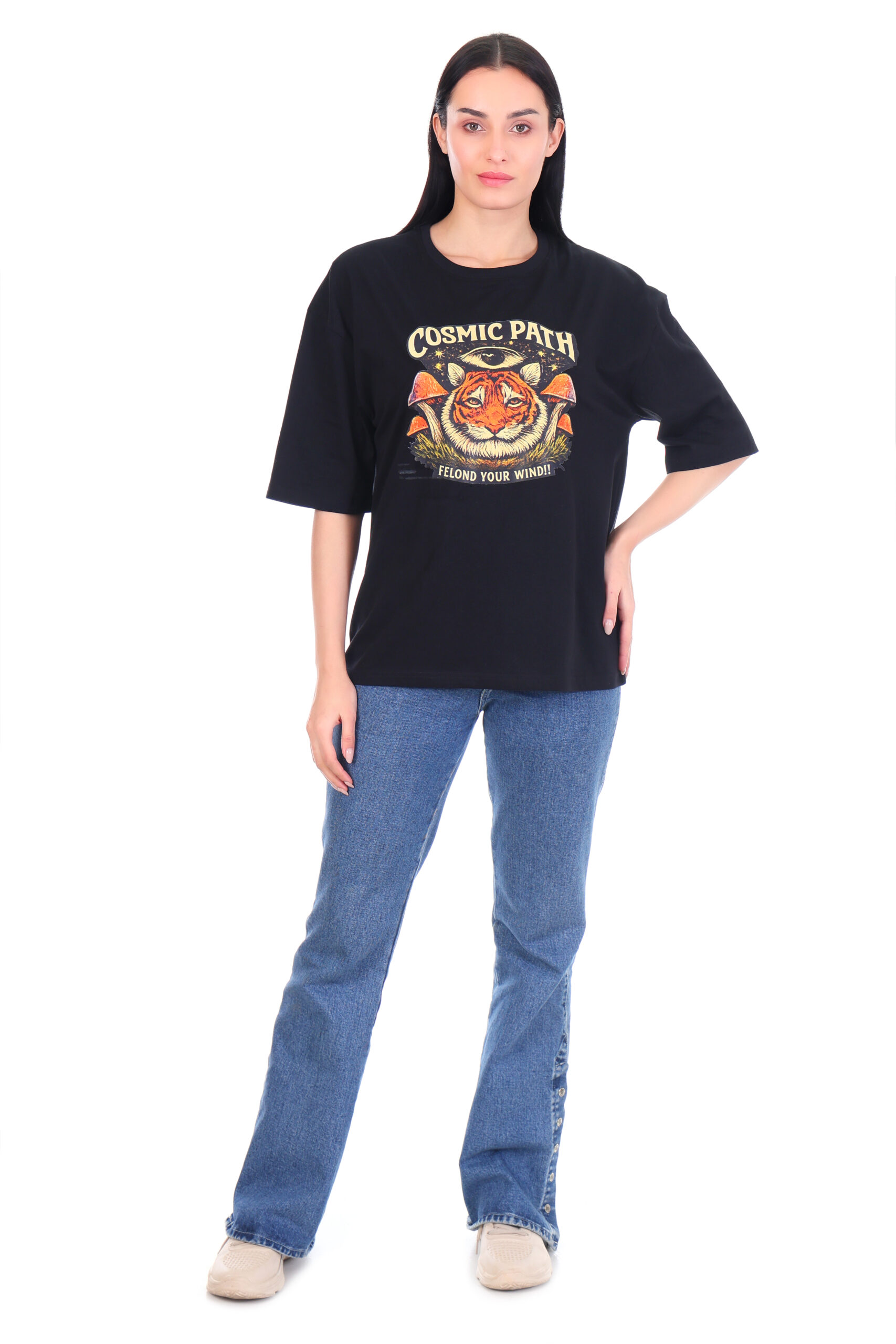 FIcon Women Oversized Graphic Printed Cotton T-Shirt